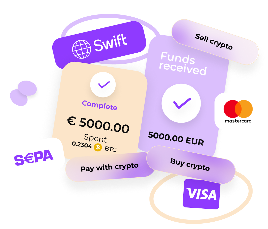 Convert cryptocurrency to EUR and receive the funds directly in your business bank account.